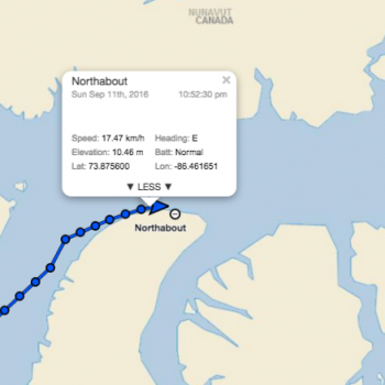 Congratulations to everyone in getting out into Lancaster. I am a good friend of Roger Wallis and did the Passage with Roger in 2014 when we had to leave his boat Philos at Cambridge. I have been following your trip from the luxury of home but feeling for what you have been going through, wet areas, compass anomalies, steering probs etc. I can honestly say I can feel for you. My big worry was when David said he saw the birds flying south. In our year it turned out that was a defining moment and the refreeze and weather all started changing. I was nervously watching your progress N to Bellot, the date, and thankfully you could go up Victoria Strait to save some time. I was especially nervous for you watching the plug coming SE to the top of Prince Regent. As for now, I am so happy for you all to have got through but equally I am aware there is a long way to go yet as Davis Strait can always dish up surprises. I hope you are able to relax a little now knowing you have all worked together to get where you are. Maybe a beer or two at Pond Inlet? Lastly, I also read David’s words and one of your expedition’s aims in pointing out to the world about climate change and its effects. Your success and work together in this way is particularly poignant in this regard. Well done & cheers
