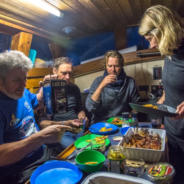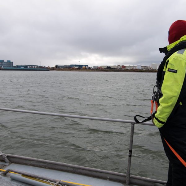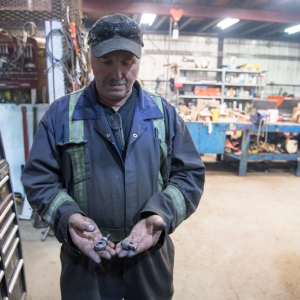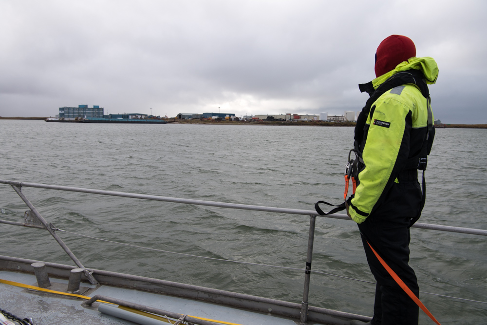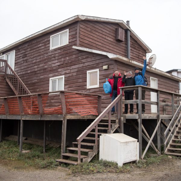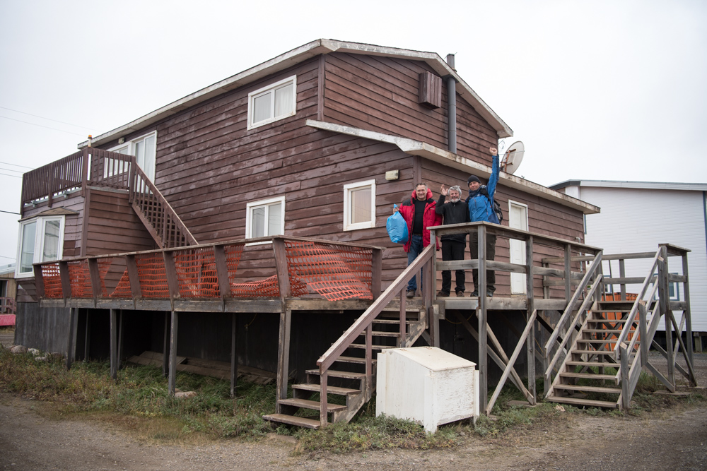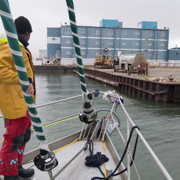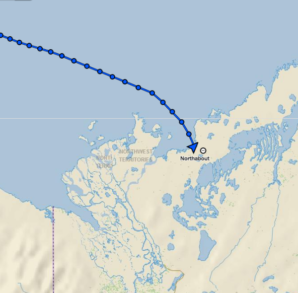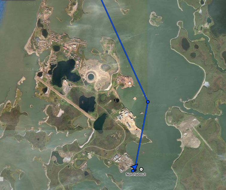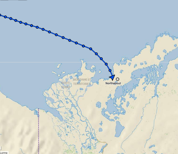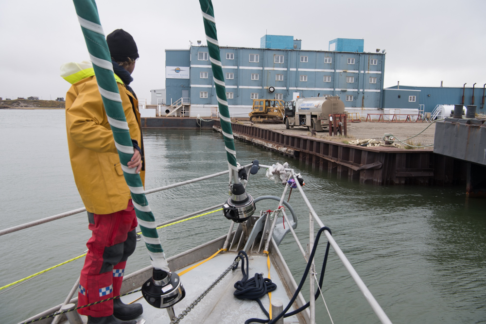 Willard Craig from Tuktoyaktuk gave up part of his holiday weekend to help us make a part to fix the autohelm. Steve and Ben fitted it. In the picture of 3 parts, the left is the old broken one (notice the stress failed metal facing the camera), the centre is the new part and the right is an emergency spare Willard made from welding two bolts together.