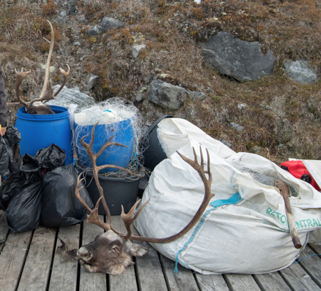 At the back of the quay were three sets of reindeer antlers, heads still attached, and on the ground were skins and flesh laid out to dry