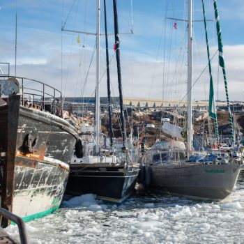 Anchored next to a tiny abandoned port named FAERINGEHAVN. Old dead wooden whalers, ribs now showing
