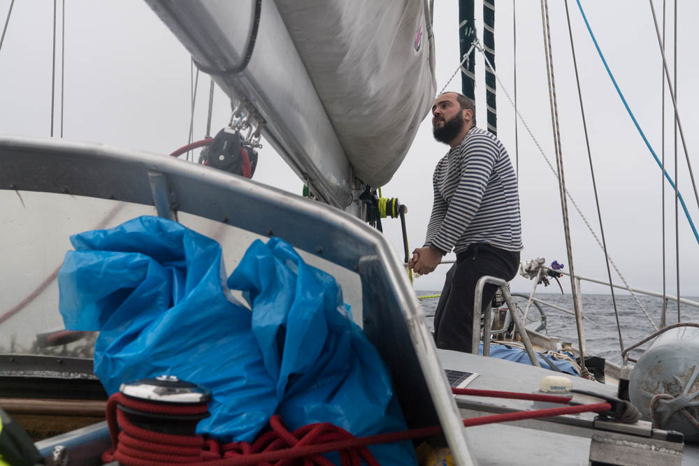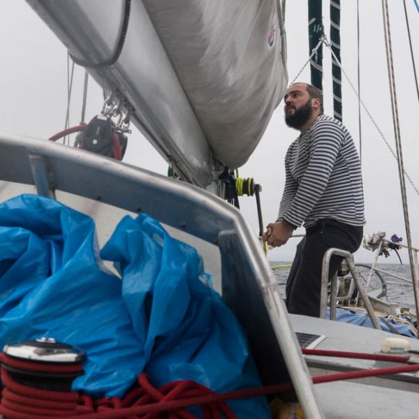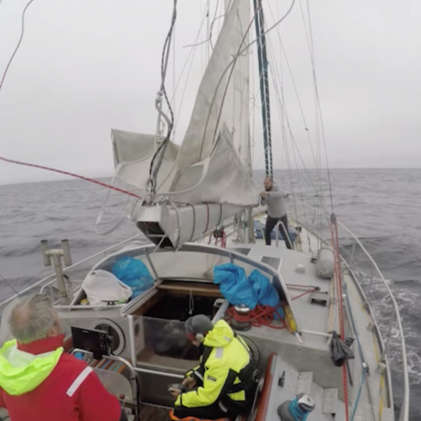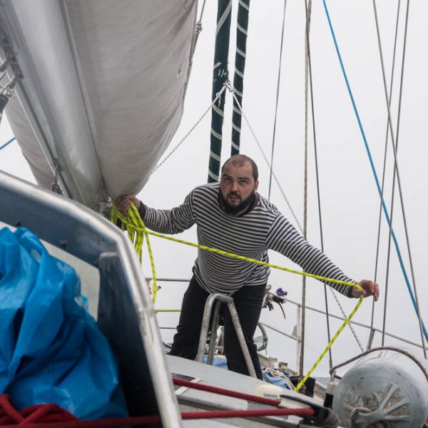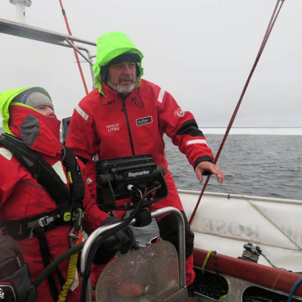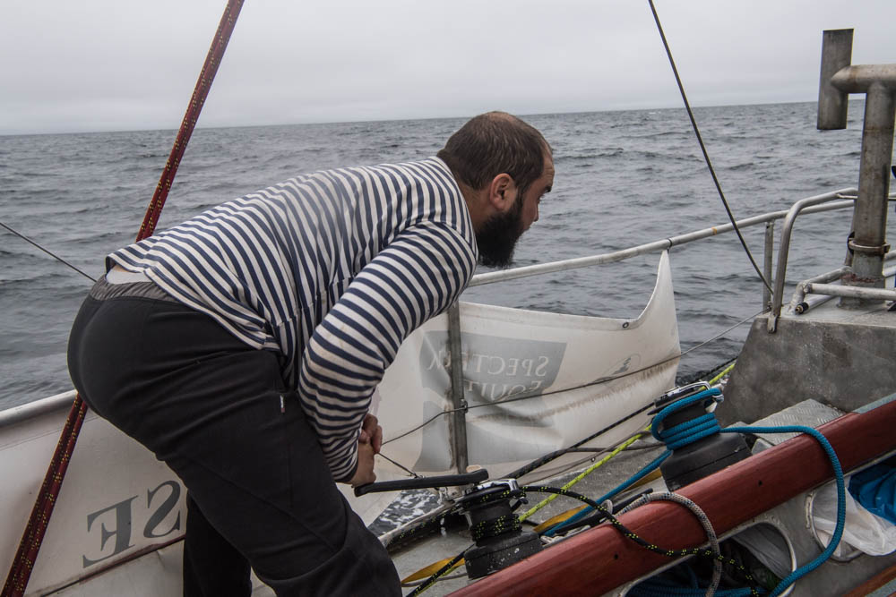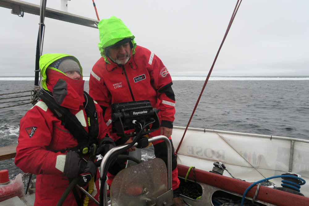 Nikolai & Denis shaking out the reefs 05.30 UTC and then our FIRST SEA ICE SIGHTING 12.30 UTC